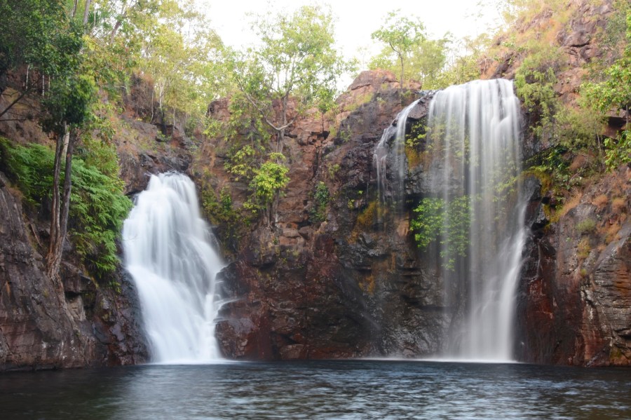 There are a few options for where to camp in Litchfield National Park, but every time we mentioned to people we were heading there, we were told we had to stay at the Florence Falls campground. Always happy to take the advice of fellow travellers if it means one less decision for us, we headed there hoping to get a spot as it worked on a first come first served basis. As we drove through the campground it looked gorgeous. If some places can bring you down, like the last place we stayed, this one had the opposite effect. It was just so peaceful and made us feel relaxed the minute we pulled up. There were flat, level sites on both sides of the road, nestled amongst tall gums and other trees, each with their own fire pit and loads of space. We found one near the amenities block and set up. After some lunch and a laze around camp settling in, we were getting pretty hot from the mid thirties temperatures and keen for a swim to cool off. While I recharged my batteries with some solo time back at camp, Kat took the kids to explore the falls after which the campground is named. Florence Falls are made up of a couple of falls, one looking like a river of pearls tumbling from the cliff top above, forming a translucent wall before plunging into the natural waterhole below, with the other one cascading over the rock wall down to the water, looking more like vertical rapids. The waterhole itself was a circular in shape, about 30m across, with huge, fern covered rock walls on one side and tall trees on the other side creating a natural shaded amphitheatre. It was just stunning, and with cool, refreshing water and was the perfect place to wile away a few hours. The water was crystal clear, and full of big black fish about 20-30cm long, swimming around the submerged rocks, seemingly happy to share their oasis with us. After a cool off, it was time for dinner, before an early night.