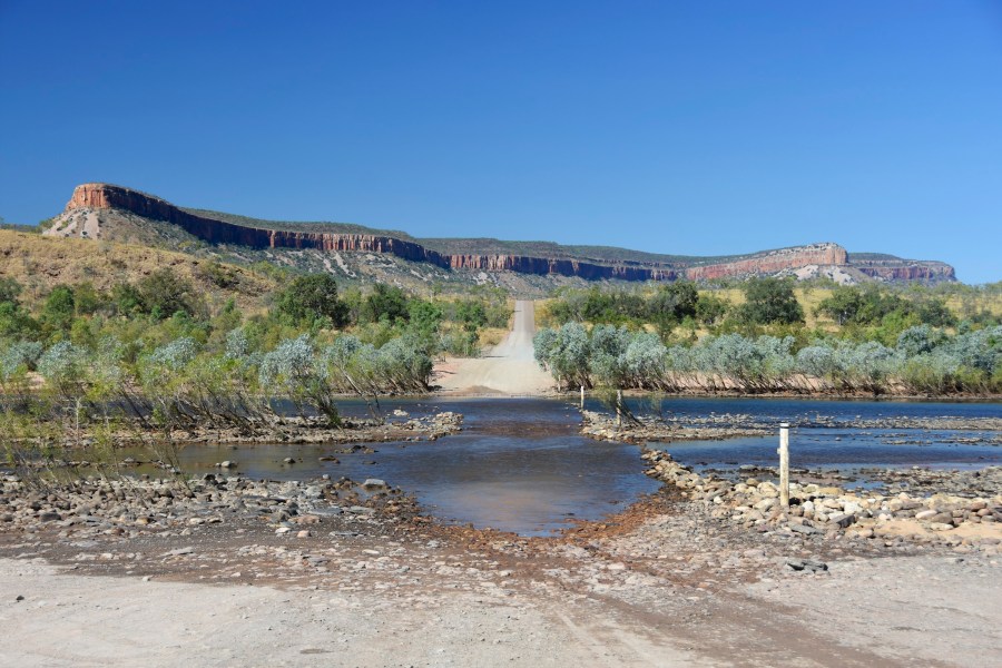 We had one more stop planned for El Questro before hitting the Gibb again so after packing up the trailer in record time, we parked it up at the main area and headed off without it to explore El Questro Gorge. The drive there wasn’t too far, but we did have to tackle a long and deep (at least in terms of what we had done previously) water crossing. It was about 50m long and 50cm deep. The kids loved it. After getting to the car park, we set off towards the gorge. The kids had their hydration packs on with plenty of scroggan and a few lollies to get them through. The walk up was really nice. It took up us a mainly shaded river bed, full of ferns and trees. There was a bit of rock hopping along the way but nothing the kids couldn’t handle. After about 1.5 hours we arrived at the half way pool, which was our final destination, as the full walk was about double that, and not something any of us were up for. I still wasn’t swimming so Kat had the kids again. This time things didn’t go quite so smoothly. There was a rock you could jump off and the kids really wanted to have a go. The first problem was that neither of them could actually get up there, and with her sore back, Kat couldn’t pull them up. Luckily there was a nice man that helped the kids up to the top. That was where they hit the second problem. Neither of the kids wanted to jump off the rock in to the water as it was a big jump into a small area. After about 5 minutes of coaxing, Oli jumped in and all was good. Em, on the other hand, was completely freaked out and wouldn’t budge. Kat used all her powers of persuasion and finally got Em to jump in without incident. At that point we were ready to head back, knowing that the walk back would test our patience, but having now conquered her fear, Em just wanted to do it again and wouldn’t take no for an answer. We eventually managed to get the out of the water and changed, and headed off on the return walk. Today’s return walk didn’t go quite so smoothly but eventually we made it back to the car and headed back to get the trailer. We had some lunch before heading off. As we reached the junction of the Gibb and the El Questro turnoff, we headed left and hit the start of a couple of weeks of dirt and corrugations.