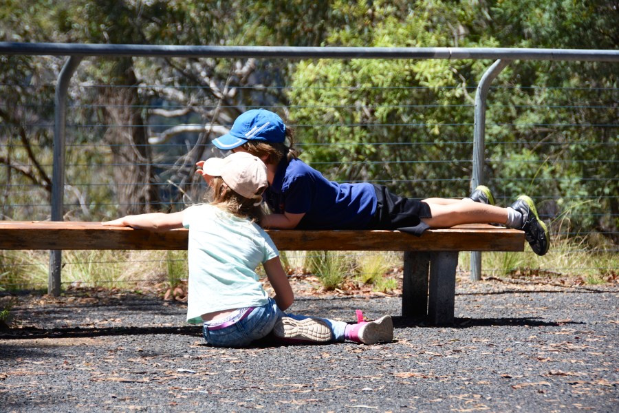 After leaving the gold mine we stopped in the nearby town of Bingara looking (without luck) for an ok coffee for us and a bakery treat for the kids. There was however a morning tea fundraiser for breast cancer going on at a local shop which we happily donated to. As we walked away, the fundraisers called us back to offer the kids a lovely pink cupcake each which brought a smile to their faces. We cut through narrow country roads towards Armidale, and there was almost no traffic around at all which was really nice. The drive took us past rolling fields of cows and sheep and was really scenic. After arriving at Armidale we stopped at a local park to let the kids have a run around. As usual, they were keen to see if there were any op shops in town, and having found one we walked the 15 minutes to it. After a bit of a look through it we wandered back to the car and drove the final 40km to the Wollomombi National Park. The campground was awesome, with huge sites, well spaced apart, surrounded by bushland, and each with a fire pit. The added bonus was that there was firewood provided. I went for a quick explore into the bush behind our camp after setting up and found a lyrebird back there so called everyone over to take a look. He was just scrounging around, scratching the ground with his sharp claws, looking for food. He didn’t seem too bothered by us but still kept his distance. We headed back to camp and it started to rain a bit so we took shelter under the awning and the kids made some comic books while Kat and I enjoyed a game of Scrabble. The rain eased and I got a fire going so I could cook hamburgers on the hotplate. The kids enjoyed marshmallows after dinner before we got them into bed and attempted one more game of Scrabble, but the cold and sleepiness got the better of us so we aborted the game and headed to bed.